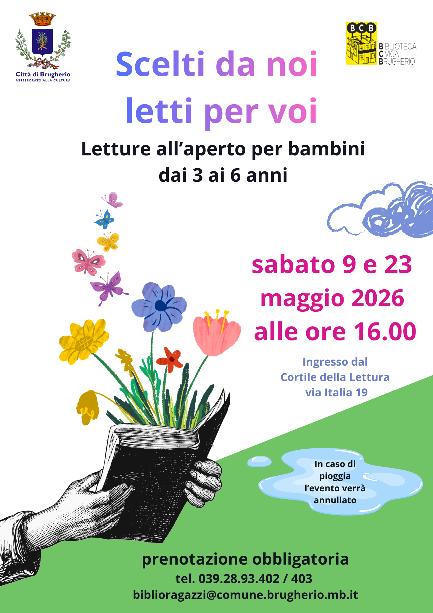 Torna nel mese di maggio “Scelti da noi, letti per voi”, l'appuntamento dedicato alla lettura per bambine e bambini dai 3 ai 6 anni. Due sabati, 9 e 23 maggio, alle ore 16, in biblioteca, entrando dal Cortile della lettura, via Italia 19.