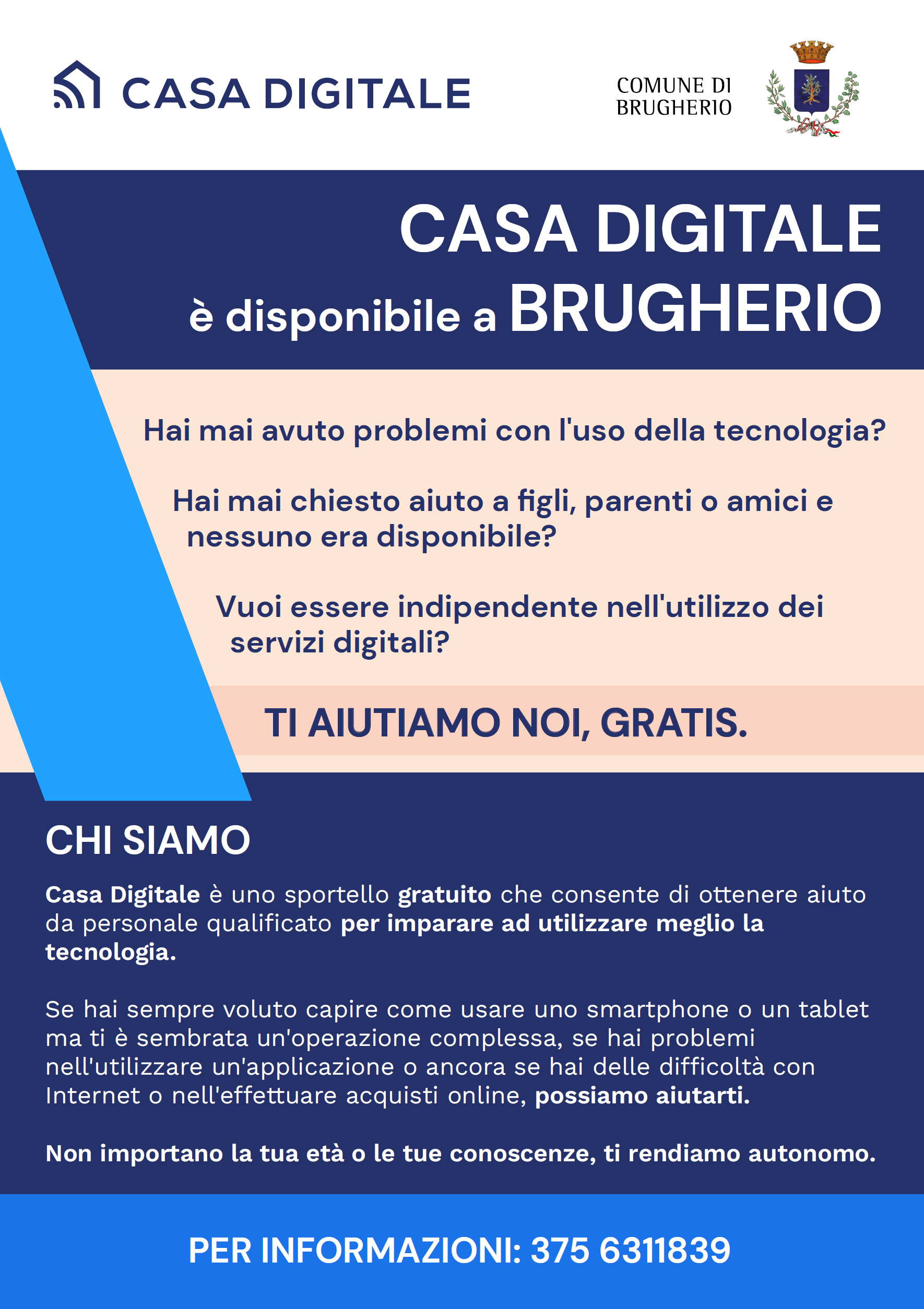 Con Casa Digitale sarà possibile imparare ad utilizzare meglio smartphone, tablet o computer, ricevere supporto per l'identità digitale, SPID o CIE, per l'inoltro di pratiche o bandi pubblici online o ancora per l'accesso al Fascicolo Sanitario Elettronico.